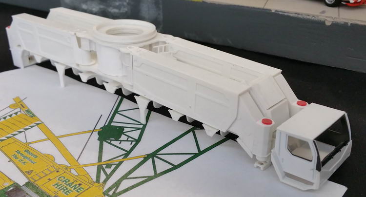Damit es nicht langweilig wird, schiebt Malte gleich das nächste Großprojekt, einen Terex SL3800 Raupenkran, nach. Es bleibt geduldig abzuwarten, bis die beiden Riesen auf einem schönen Diorama ihren ersten Tandemhub erledigen.