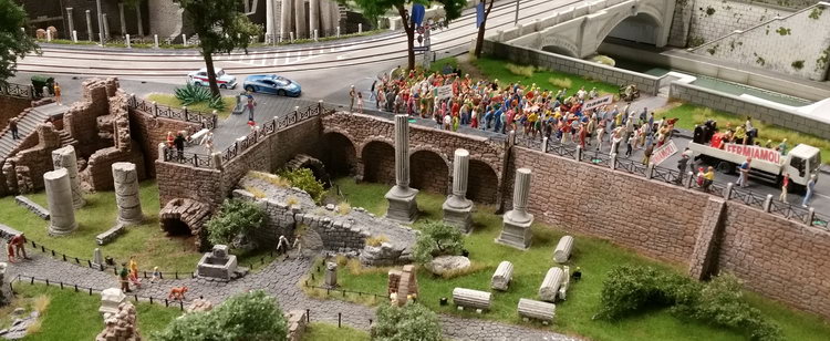 Die Überbleibsel dieses einst riesigen Amphitheaters beeindrucken auch in H0. Der Nachbau ist riesig und jede noch so kleine Ecke des Innenraums...