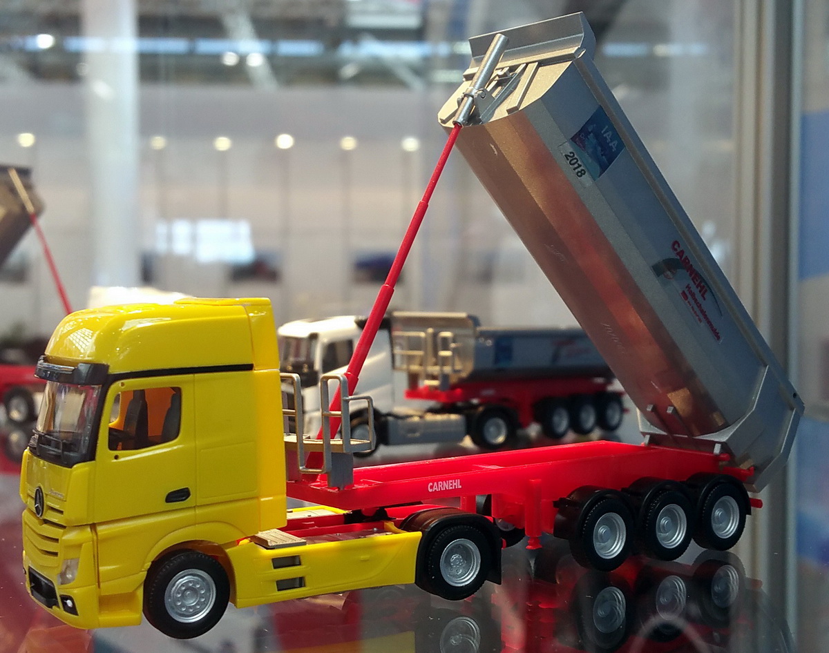 Diese Rundmulde wurde als Werbemodell für die IAA 2018 frisch aufgelegt und von Zugmaschinen verschiedener Hersteller gezogen.