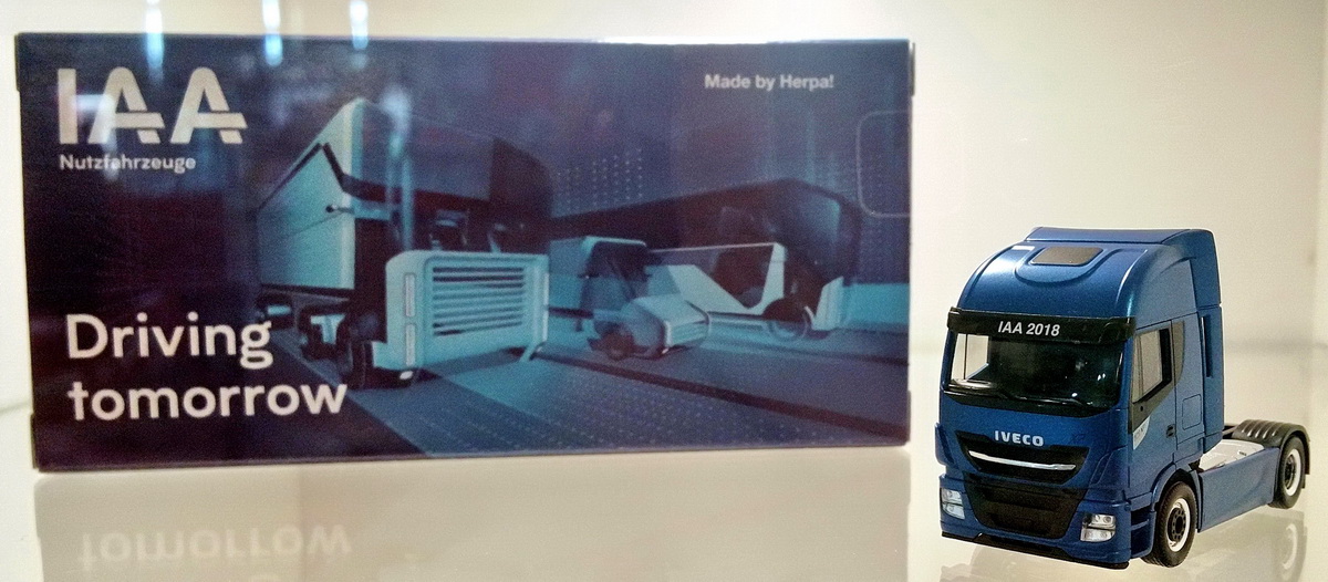 Am Messestand von Herpa, dem einzig verbliebenen H0-Hersteller vor Ort, wurden zwei Sondermodelle im typischen Blauton angeboten. Der neue Iveco Stralis XP und...