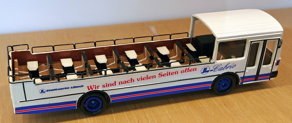 Hans-Jürgen Schütt hatte die perfekten Modelle nach Lübeck gebracht. Busse aus Lübeck! Dieser geöffnete Bus machte die Stadtrundfahrt zu einem unvergesslichen Ereignis, wenn das Wetter mitspielte.