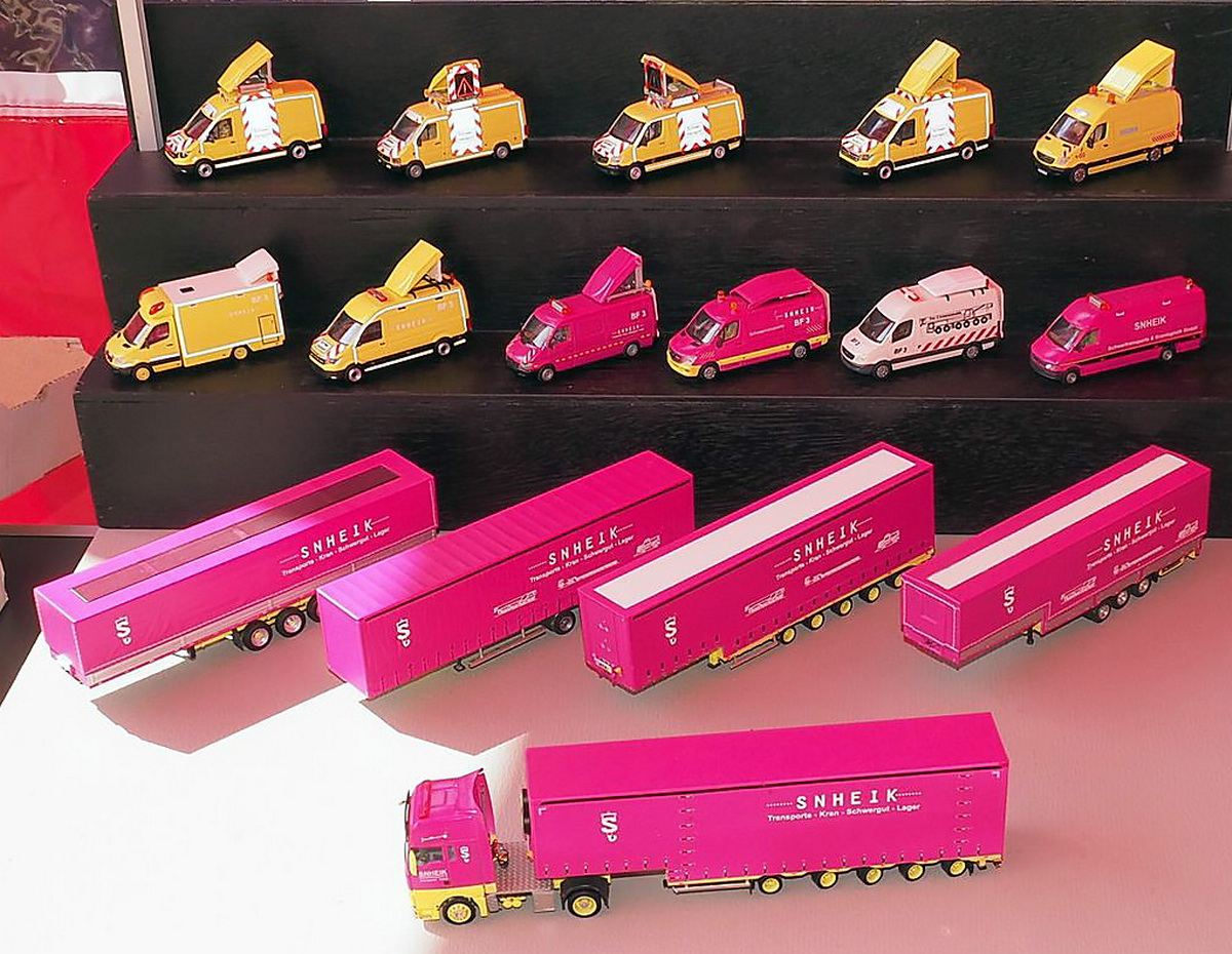 Die modernen Begleitfahrzeuge der 4. Generation bilden einen Schwerpunkt seiner Modellbauprojekte.