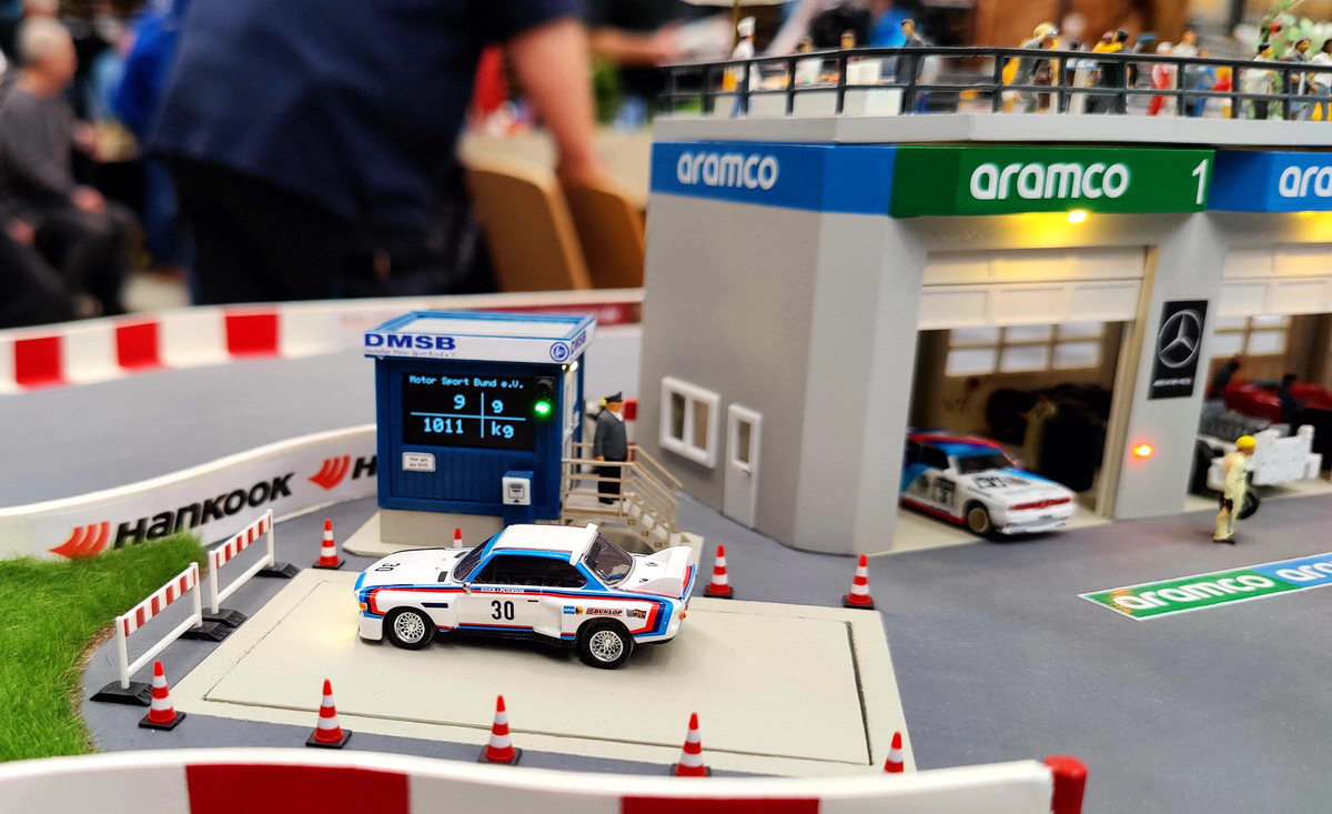 Auf einem Streckenverlauf ähnlich der Berliner AVUS drehte ein BMW 3.5 CSL beeindruckende Runden. Mit einer Beschleunigung, die dem Vorbild durchaus würdig war, und viel Beleuchtung am Fahrzeug, blieben für Fahrer und Fans keine Wünsche offen.