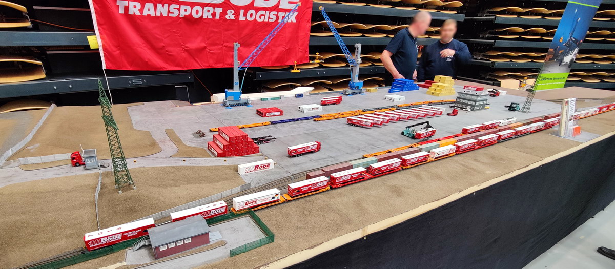 Eine riesige Schauanlage war der Spedition Bode GmbH & Co. KG Transport & Logistik gewidmet. Ob die sehr sachlich und technisch wirkende Szene bereits abgeschlossen ist oder für kommende Auftritte weitere Ausgestaltungen geplant sind, ist nicht bekannt.