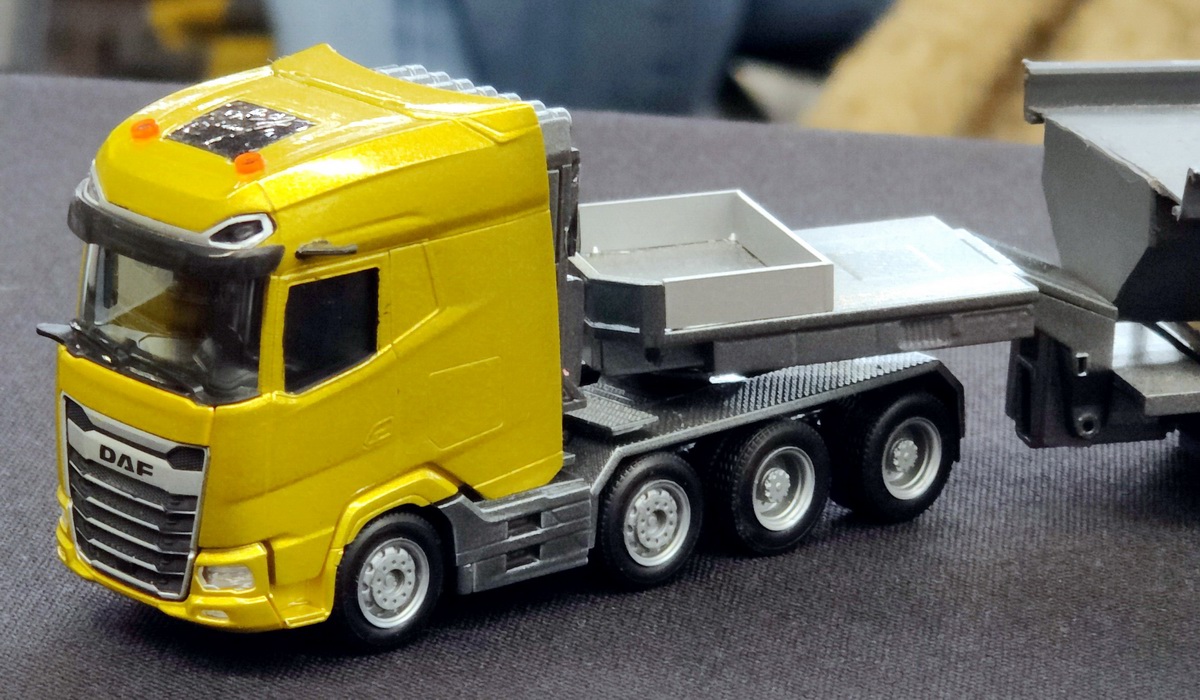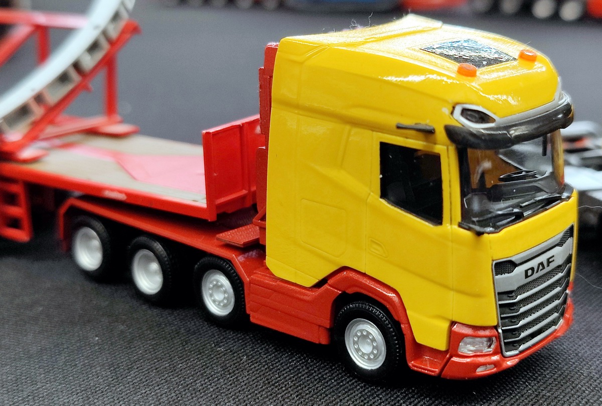 Die neuen und geräumigen DAF XG sind ideal, wenn der Fahrer so viel Zeit in der Kabine verbringen muss. Urk war mit diesem Modell beinahe schneller als der Hersteller. Dort wird ein ähnliches Vorbild gezeigt, allerdings rollt es noch nicht auf der Straße.