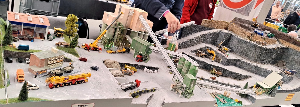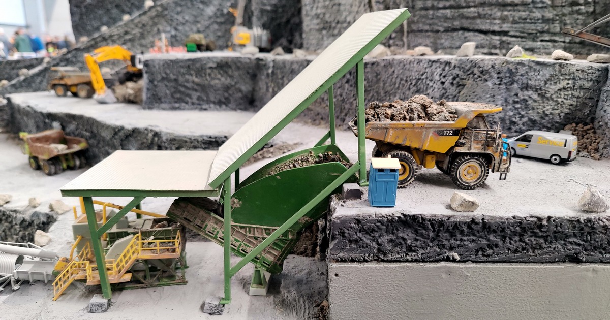 Wesentlich mehr Fläche hatten Ralf Lang und Andreas Deisl für ihr Tagebau-Diorama zur Verfügung. Links befindet sich der Eingangsbereich, die Zufahrt und die Verwaltung.