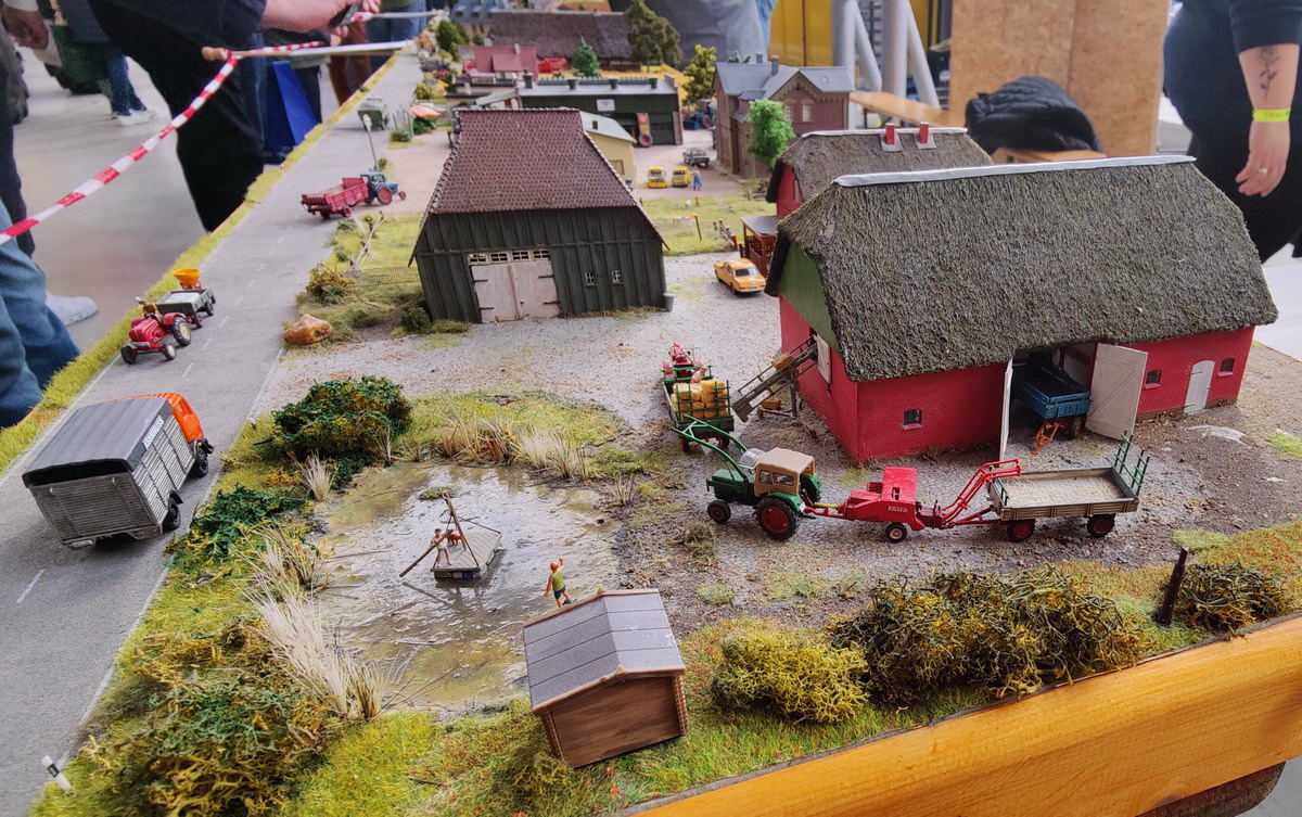 In der Messehalle Husum fanden sich am 19.10.2024 Fans und Modellbauer landwirtschaftlicher Geräte zum Staunen und Fachsimpeln ein. Die Tische waren mit Modellen, Dioramen und Händlerware gut gefüllt, Gleiches lässt sich über die Besucher in den Gängen sagen.