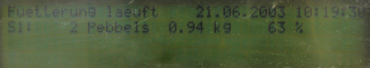 Während der Fütterung kann auf einer Anzeige abgelesen werden welches Tier gerade frisst und wieviel seiner Tagesration es sich bereits abgeholt hat.
