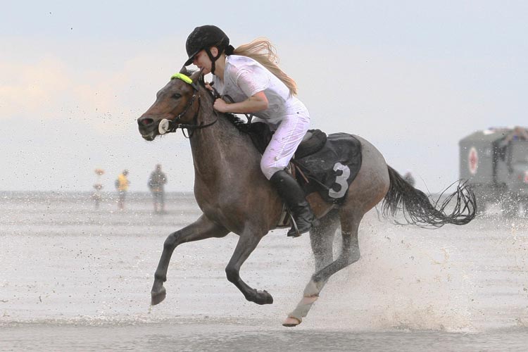 Marisa Bock und Turbo Bosheve übernehmen im ersten Bogen die Führung bei dem 2500 m langen Rennen.