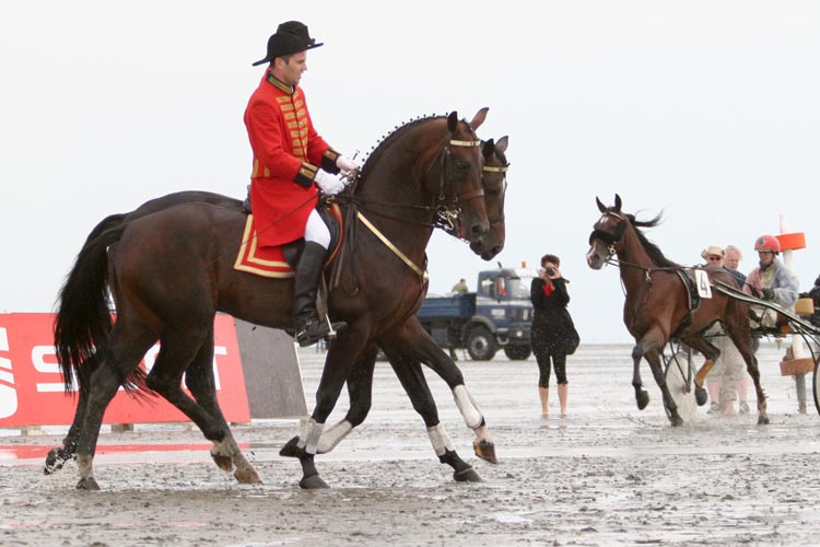 Hengste des Langestüts Celle präsentieren sich im Watt