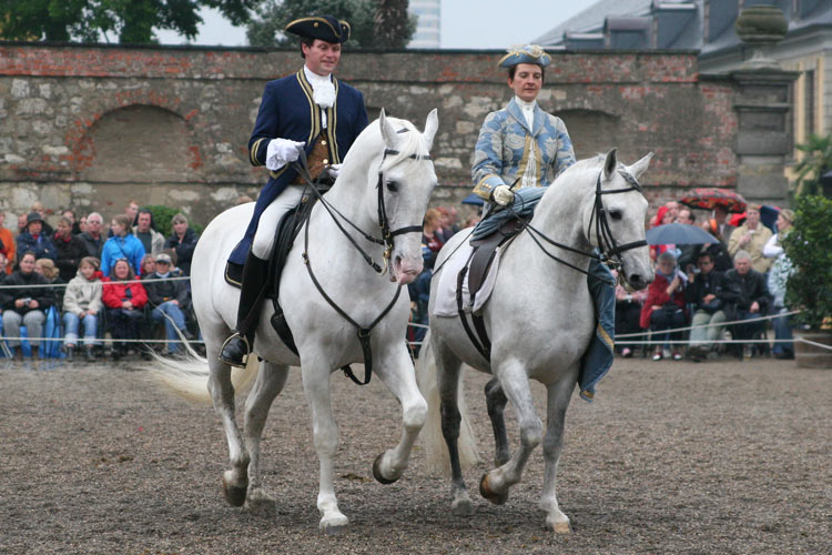 Die Familie Krischke von der Fürstlichen Hofreitschule Bückeburg präsentierte die Hohe Schule der Reitkunst unterm Sattel und an der Hand.