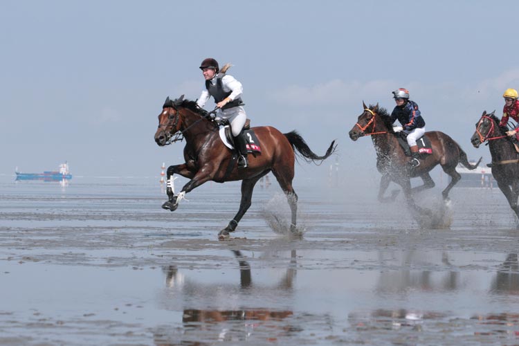 Nachdem Start übernehmen Marisa Bock mit Everything Goes (Nr. 5) und Mario Krismann mit Bernie (Nr. 10) die Führung des Feldes.